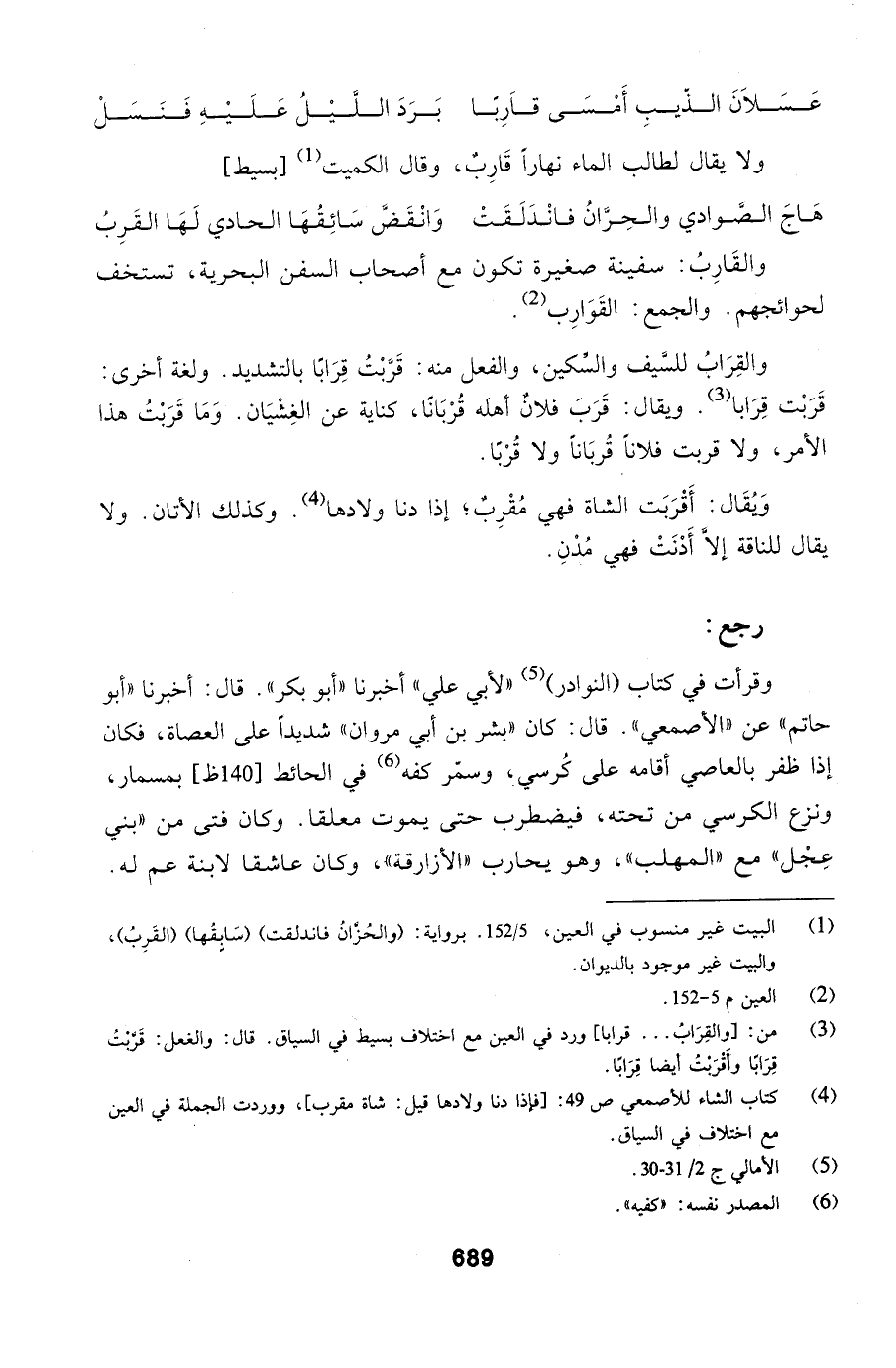 وقرأت في كتاب (النوادر) لأبي علي أخبرنا أبو بكر. قال: أخبرنا أبو حاتم عن الأصمعي. قال: