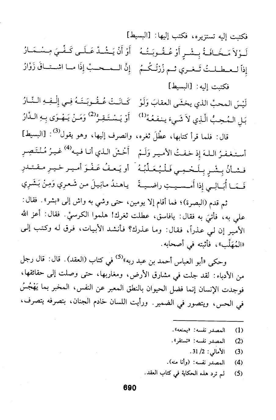 وحكى أبو العباس أحمد بن عبد ربه في كتاب (العقد). قال: قال رجل من الأدباء: لقد جلت في