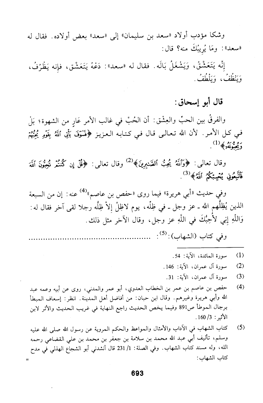 والفرقُ بين الحبِّ والعِشْق: أن الحُبَّ في غالب الأمر عَارٍ من الشهوة؛ بَلْ في كل الأمر. لأن الله