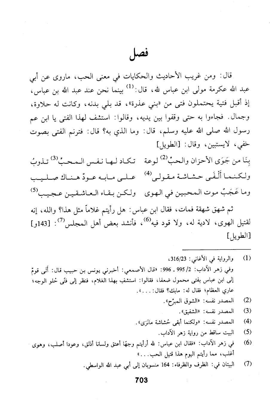 قال: ومن غريب الأحاديث والحكايات في معنى الحب، ماروى عن أبي عبد الله عكرمة مولى ابن