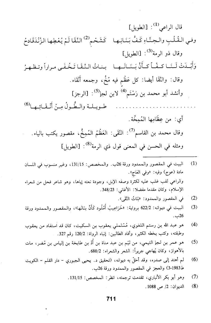وقال محمد بن القاسم: النَّقَى: العَظْمُ المُمِخُّ، مقصور يكتب بالياء.