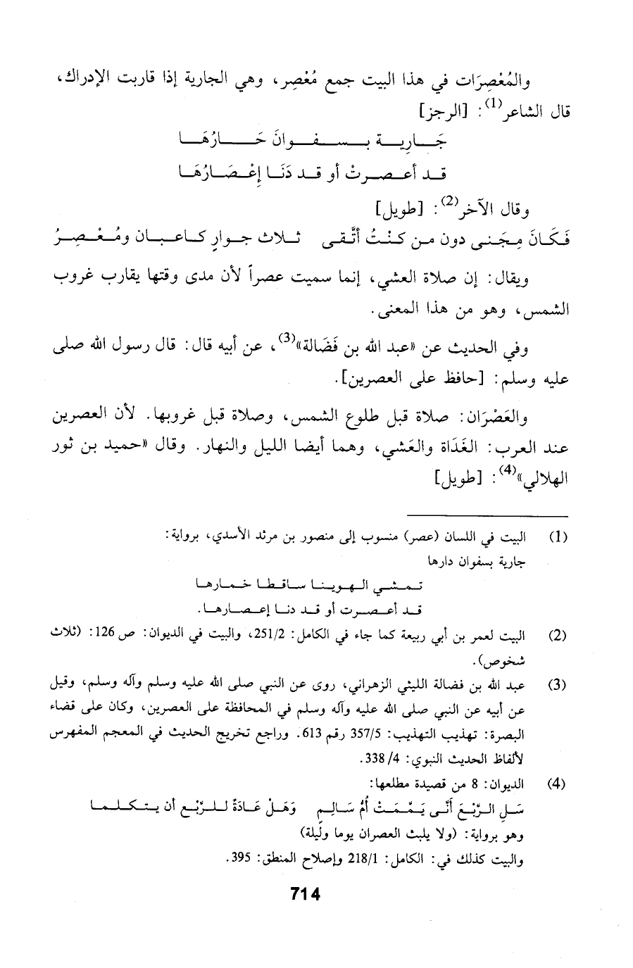 ويقال: إن صلاة العشي، إنما سميت عصراً لأن مدى وقتها يقارب غروب الشمس، وهو من هذا