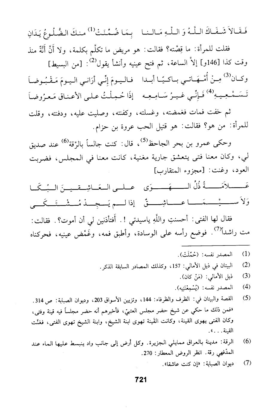 وحكى عمرو بن بحر الجاحظ، قال: كنت جالساً بالرَّقة عند صديق لي، وكان معنا فتى يتعشق