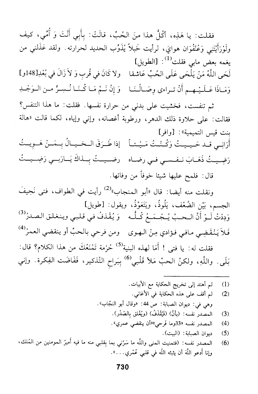 فقلت: يا هَذِه، أكُلُّ هذا منَ الحُبِّ، قالَتْ: بِأَبِي أَنْتَ وَآُمِّي، كيف ولَوْرَأَيْتَنِي وَعُنْفُوَان هوايَ، لرأيت
