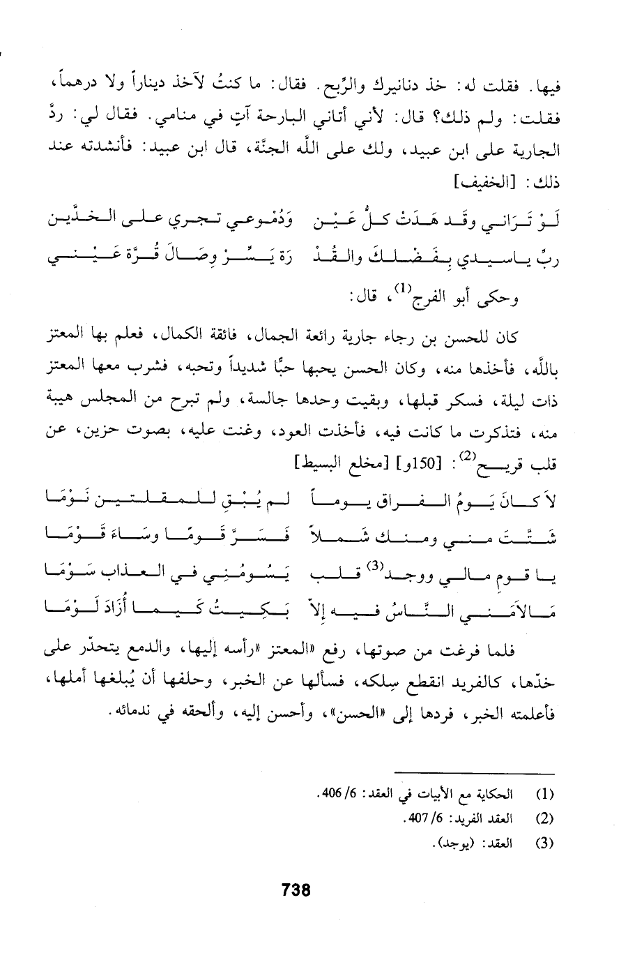 فلما فرغت من صوتها، رفع المعتز رأسه إليها، والدمع يتحدّر على خدّها، كالفريد انقطع سِلكه،