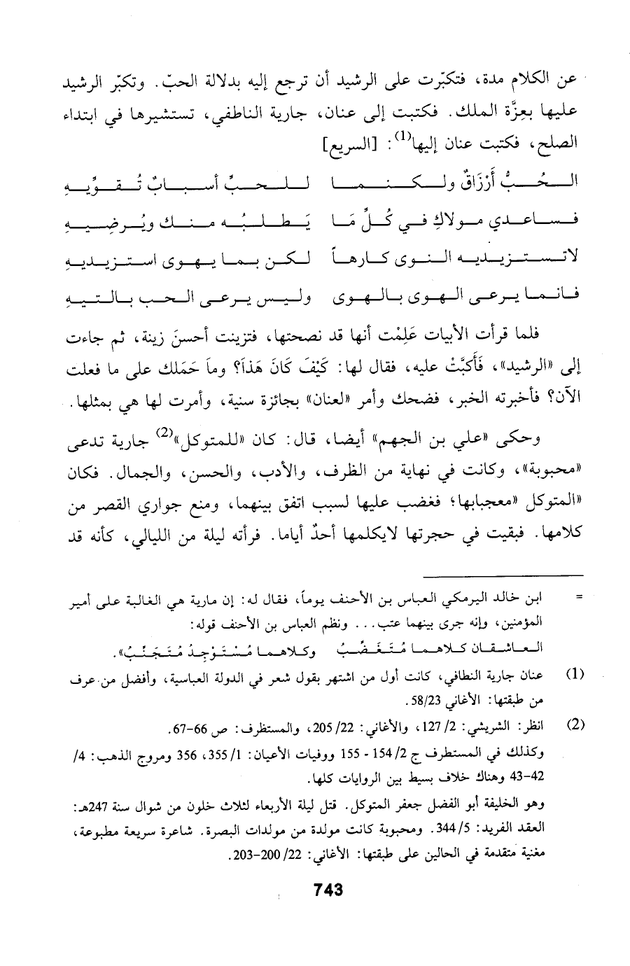 عن الكلام مدة، فتكبّرت على الرشيد أن ترجع إليه بدلالة الحبّ. وتكبّر الرشيد عليها بعِزَّة الملك. فكتبت إلى عنان، جارية