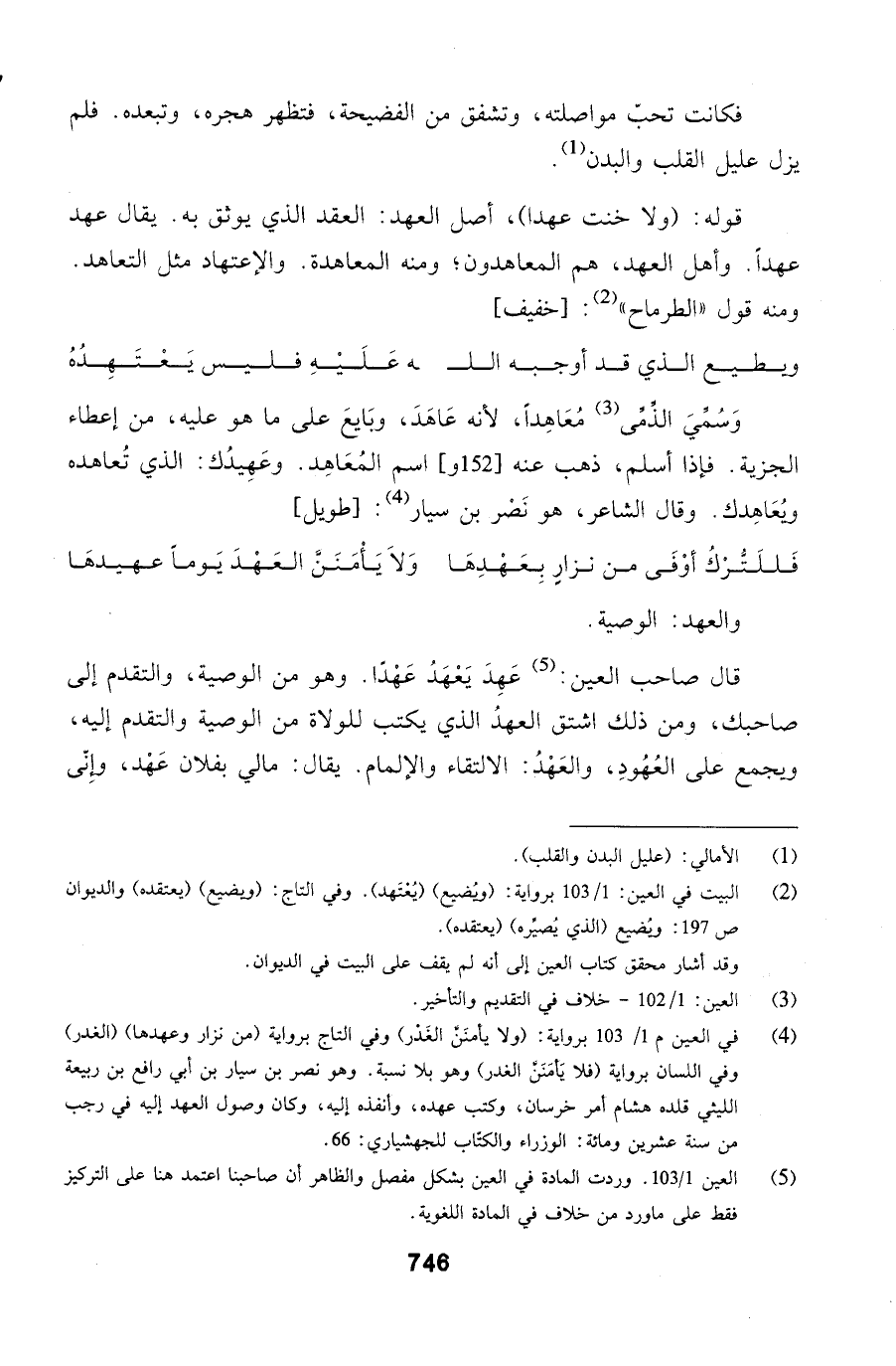 اسم المُعَاهِد. وعَهِيدُك: الذي تُعاهده ويُعَاهِدك. وقال الشاعر، هو نَصْر بن سيار: