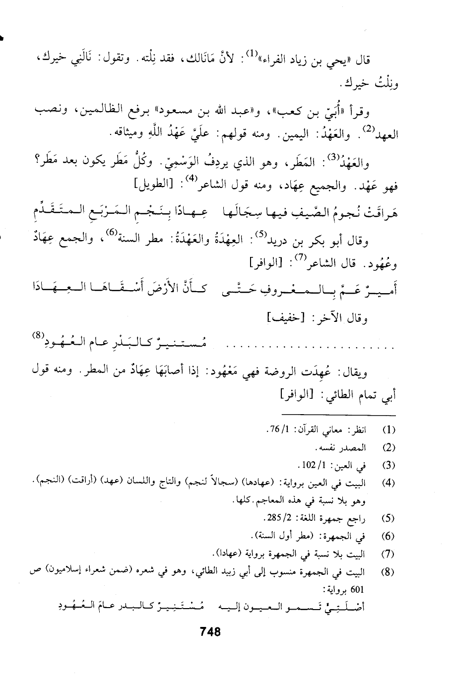 ويقال: عُهِدَت الروضة فهي مَعْهُود: إذا أصابَهَا عِهَادٌ من المطر. ومنه قول أبي تمام الطائي: