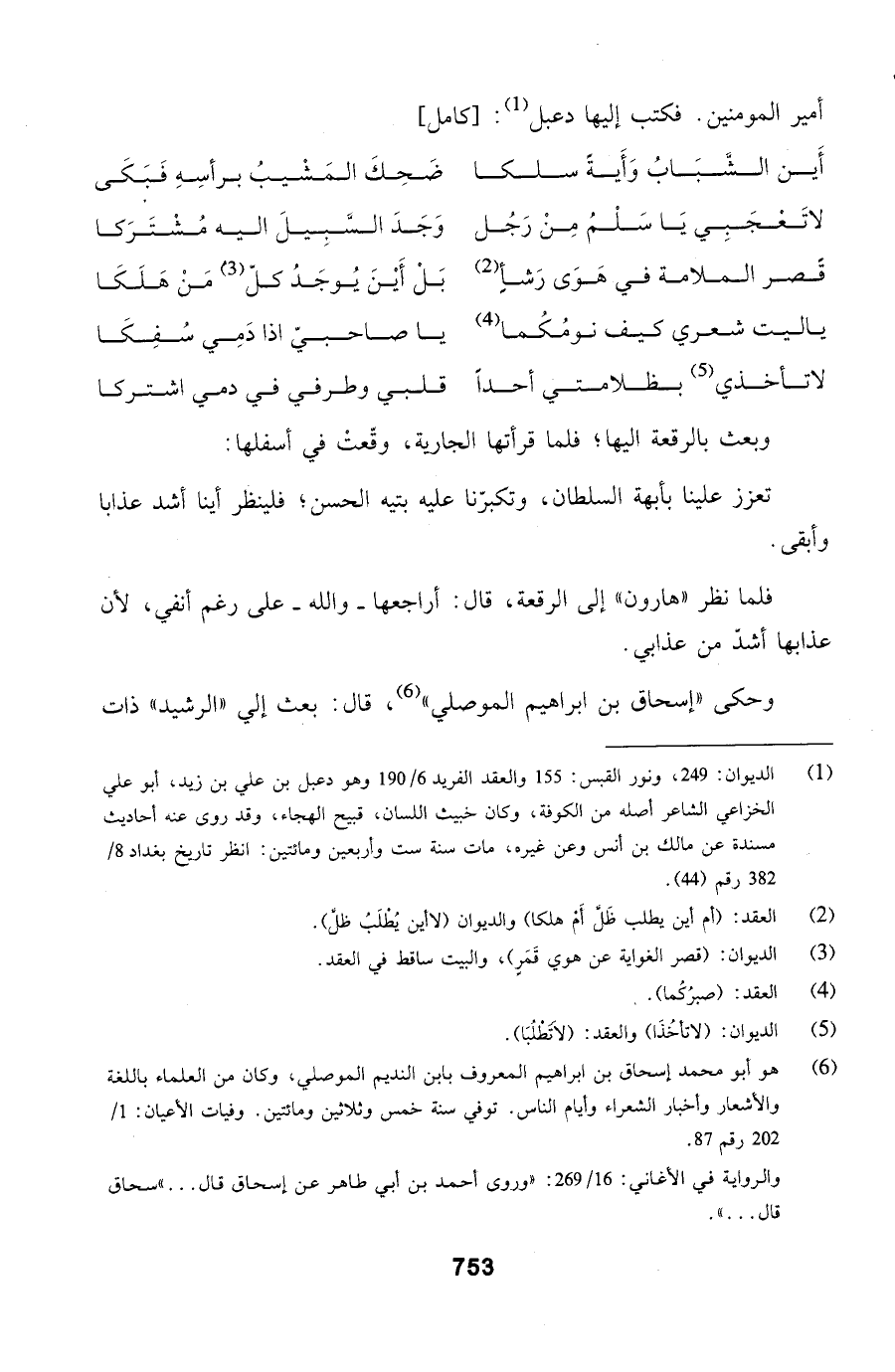 أمير المومنين. فكتب إليها دعبل: