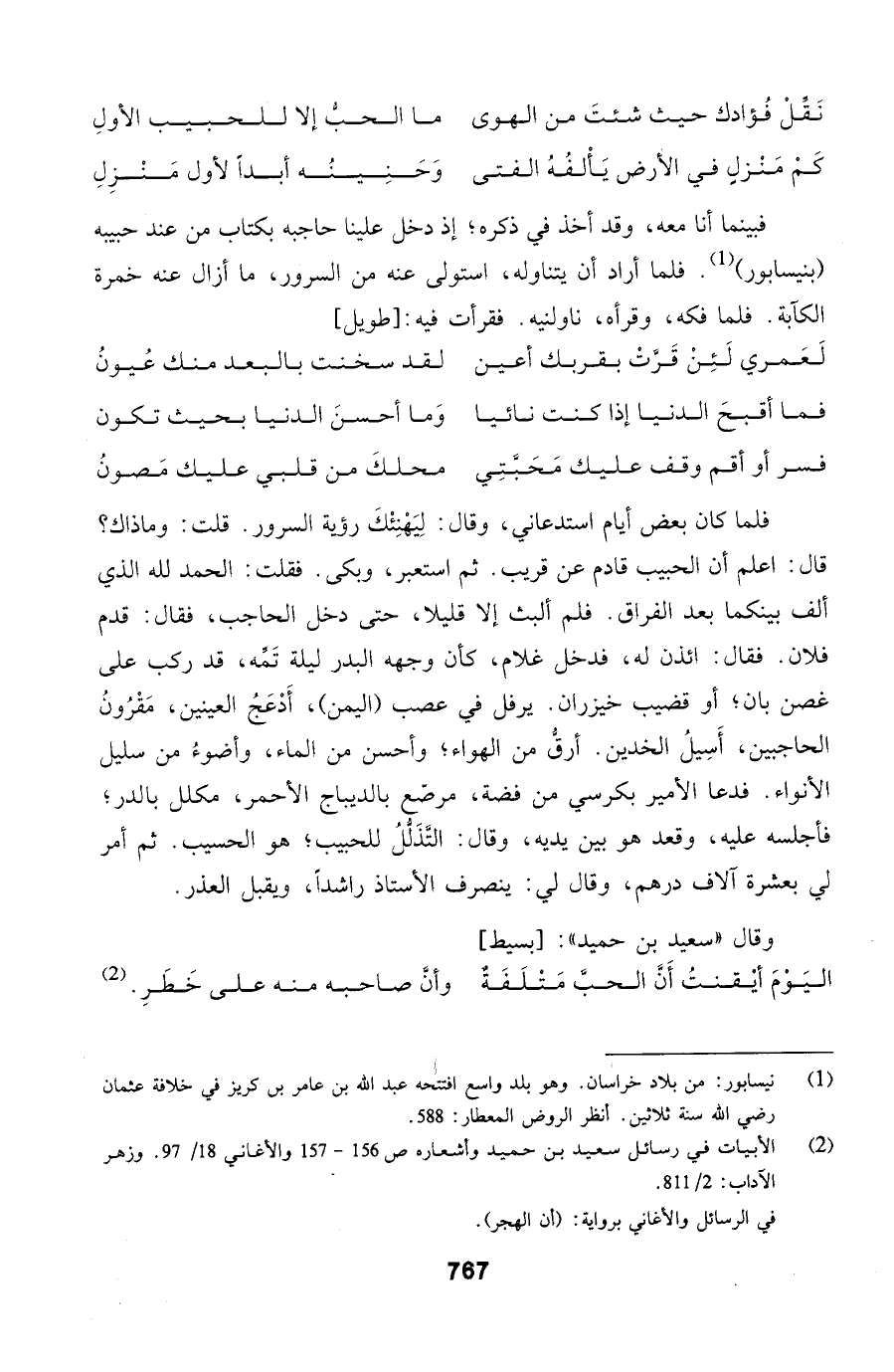 فبينما أنا معه، وقد أخذ في ذكره؛ إذ دخل علينا حاجبه بكتاب من عند حبيبه (بنيسابور). فلما أراد
