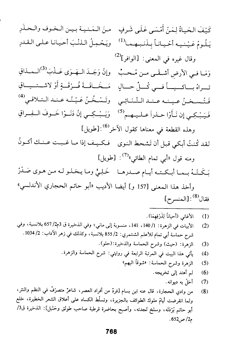 وأخذ هذا المعنى أيضا الأديب أبو حاتم الحجاري الأندلسي فقال: