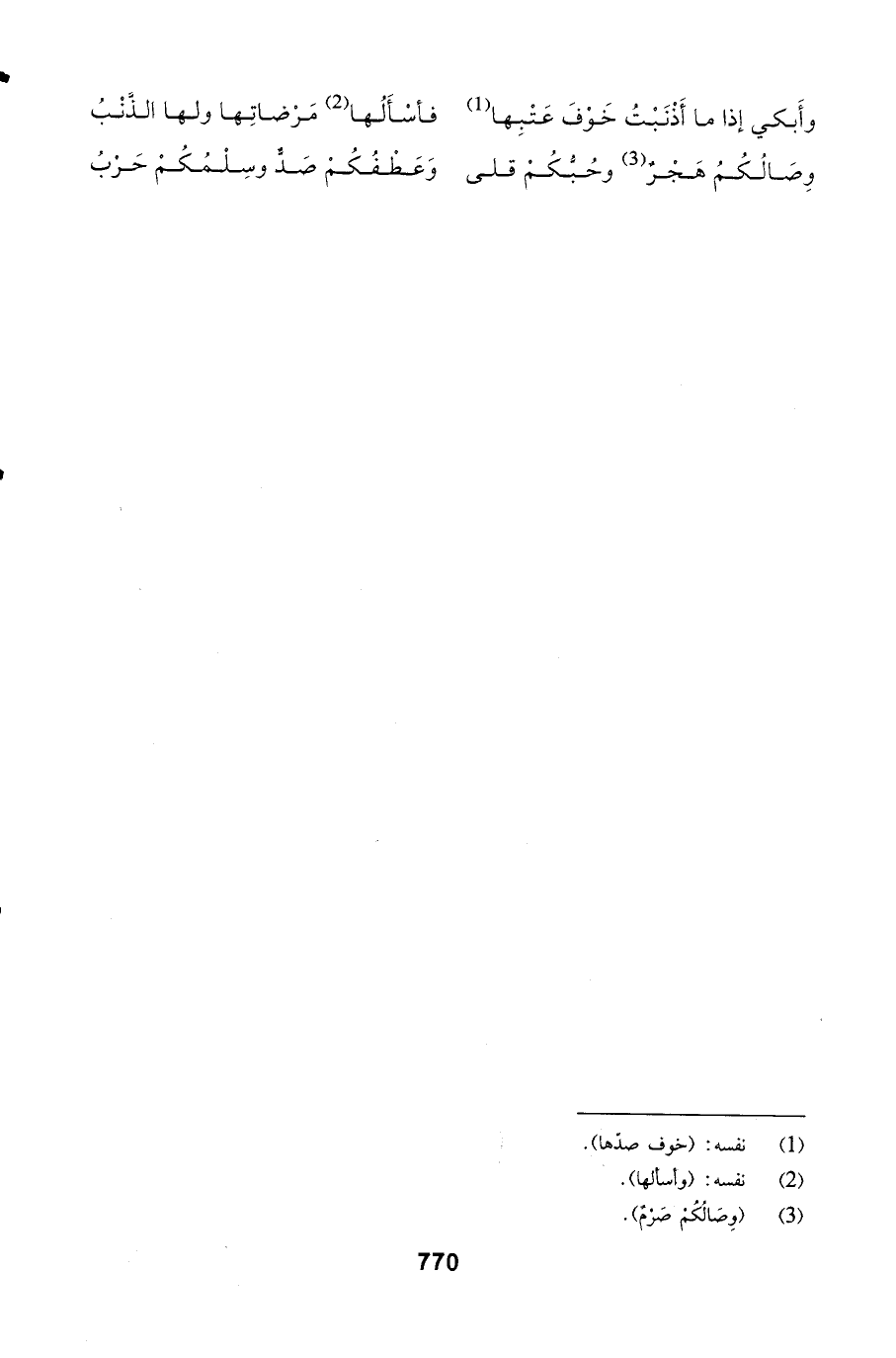وِصَالُكُمُ هَجْرٌ وحُبُّكُمْ قلى ... وَعَطْفُكُمْ صَدٌّ وسِلْمُكُمْ حَرْبُ
