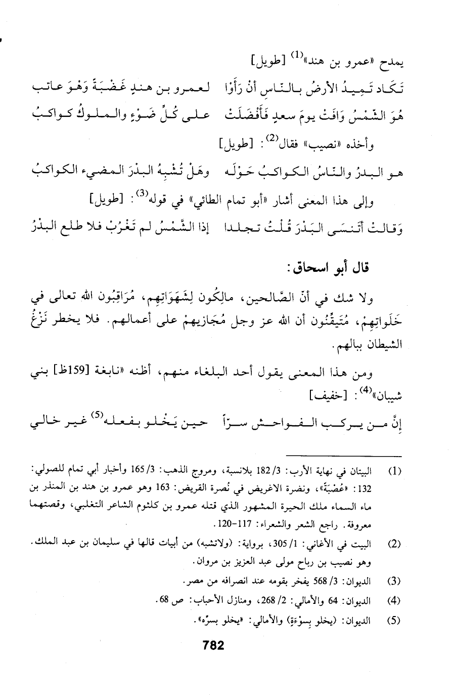 ومن هذا المعنى يقول أحد البلغاء منهم، أظنه نابغة بني شيبان: