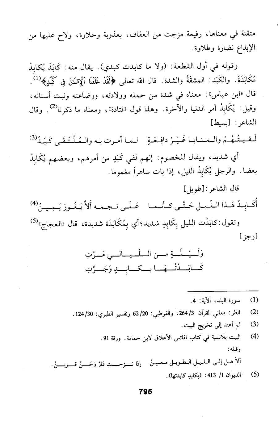 وقوله في أول القطعة: (ولا ما كابدت كبدي). يقال منه: كَابَدَ يُكابِدُ مُكَابَدَةً. والكَبَد: المشقّةُ والشدة.