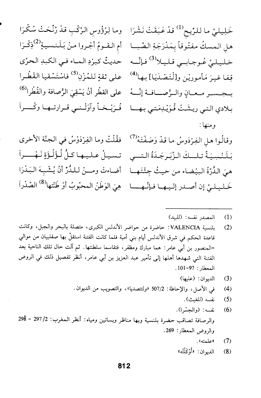 بَلَنْسِيَةٌ تلكَ الزَّبَرجَدَةُ التي ... تسيلُ عليها كلُّ لُؤْلُؤَةٍ نَهْراَ
