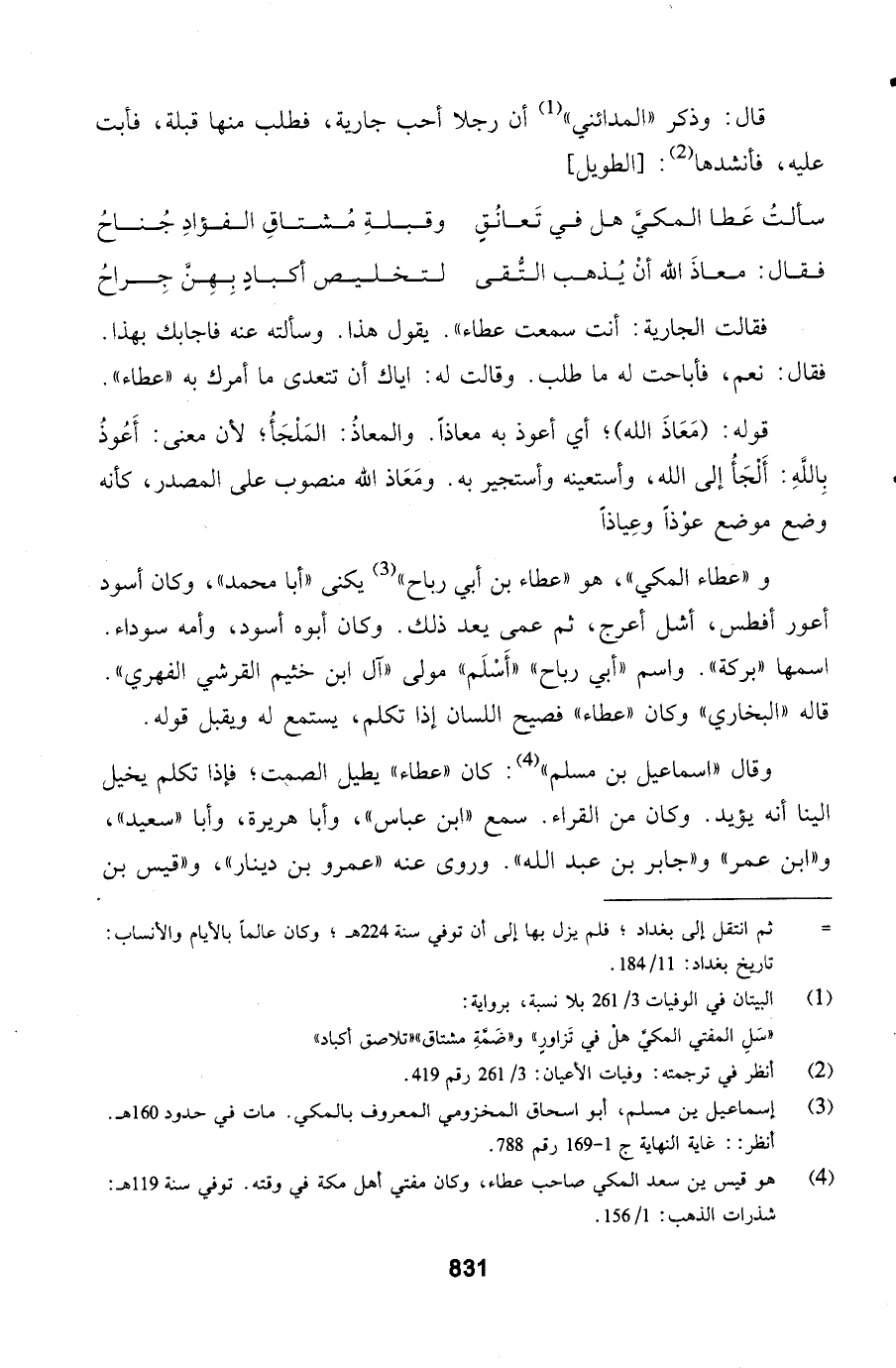 سألتُ عَطا المكيَّ هل في تَعانُقٍ ... وقبلةِ مُشتاقِ الفؤادِ جُناحُ