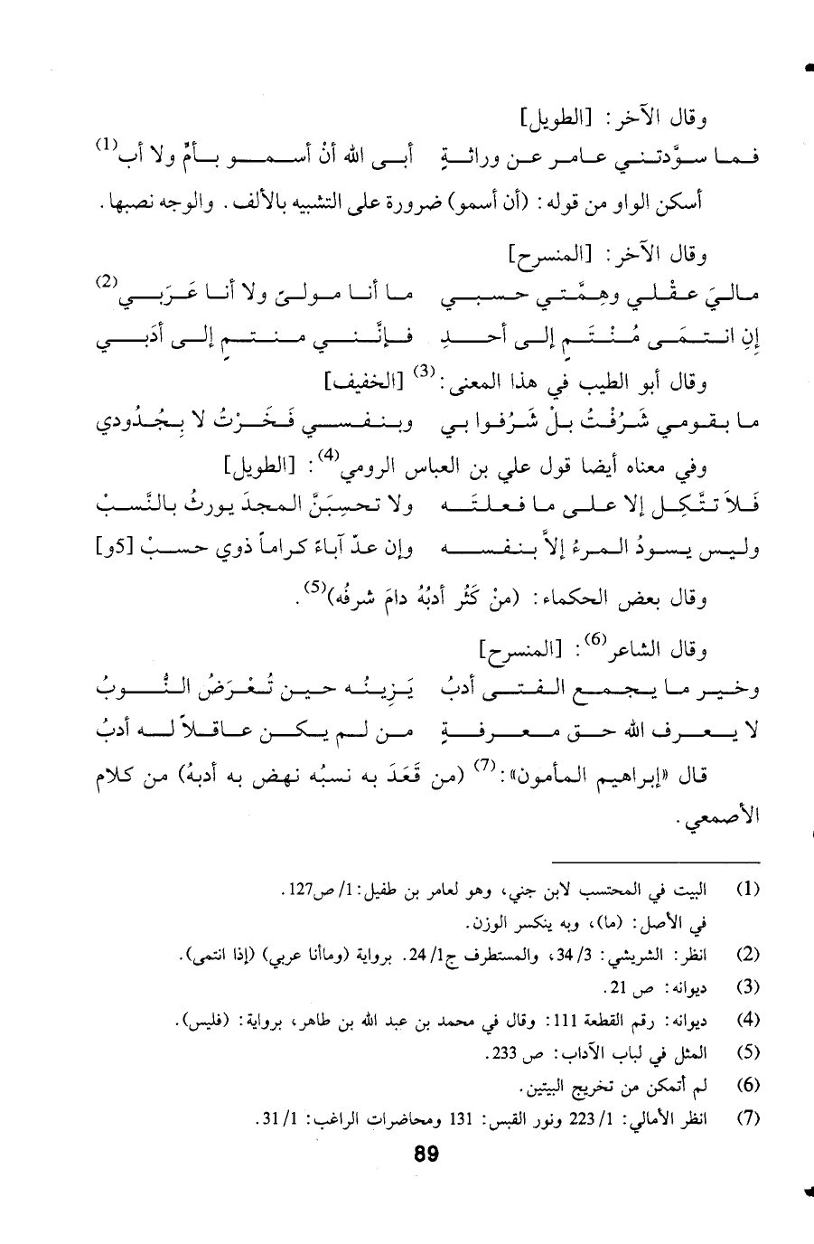 قال إبراهيم المأمون: (من قَعَدَ به نسبُه نهض به أدبهُ) من كلام الأصمعي.