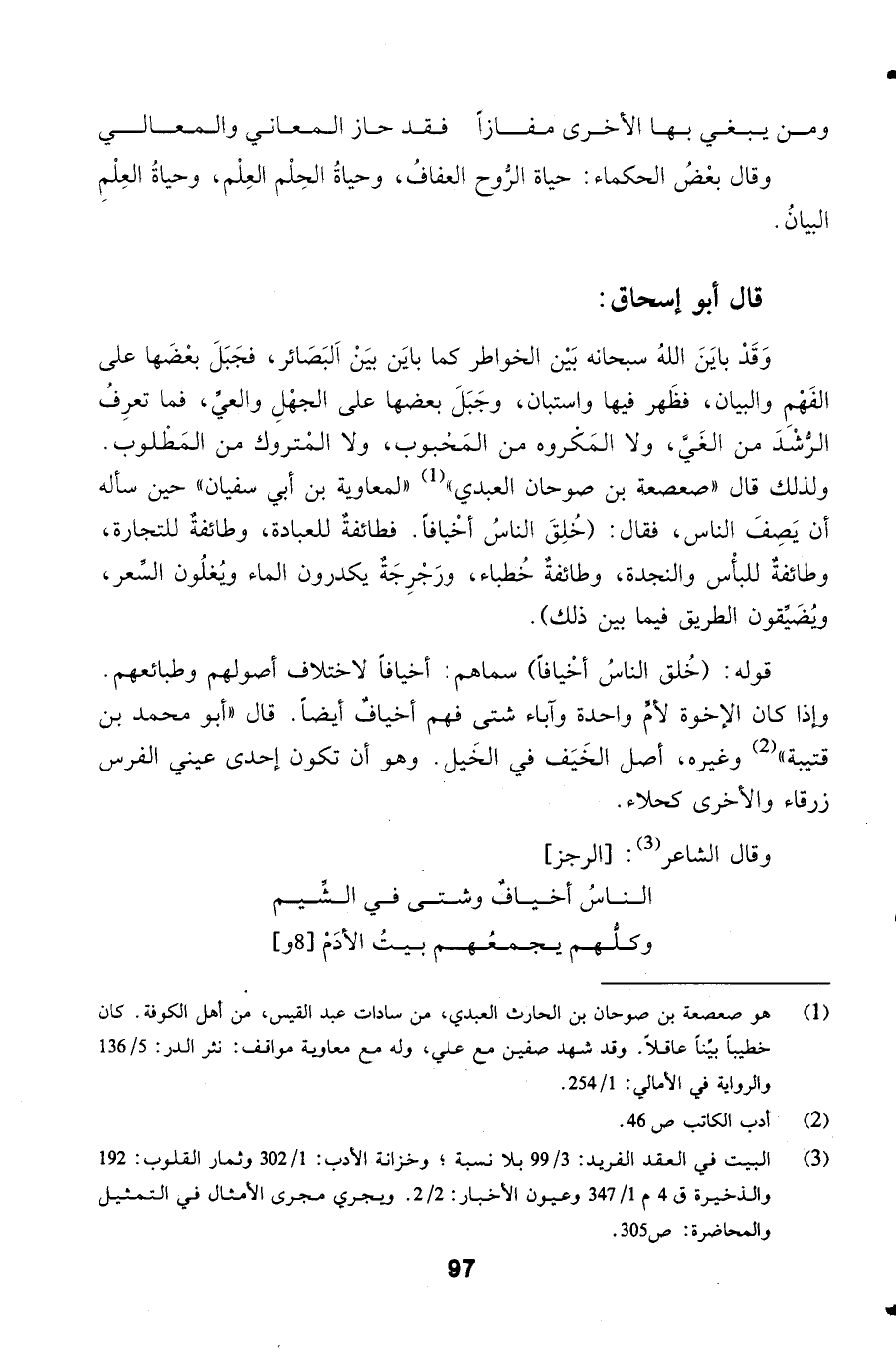 المَحْبوب، ولا المَْتروك من المَطْلوب. ولذلك قال صعصعة بن صوحان العبدي لمعاوية بن أبي سفيان