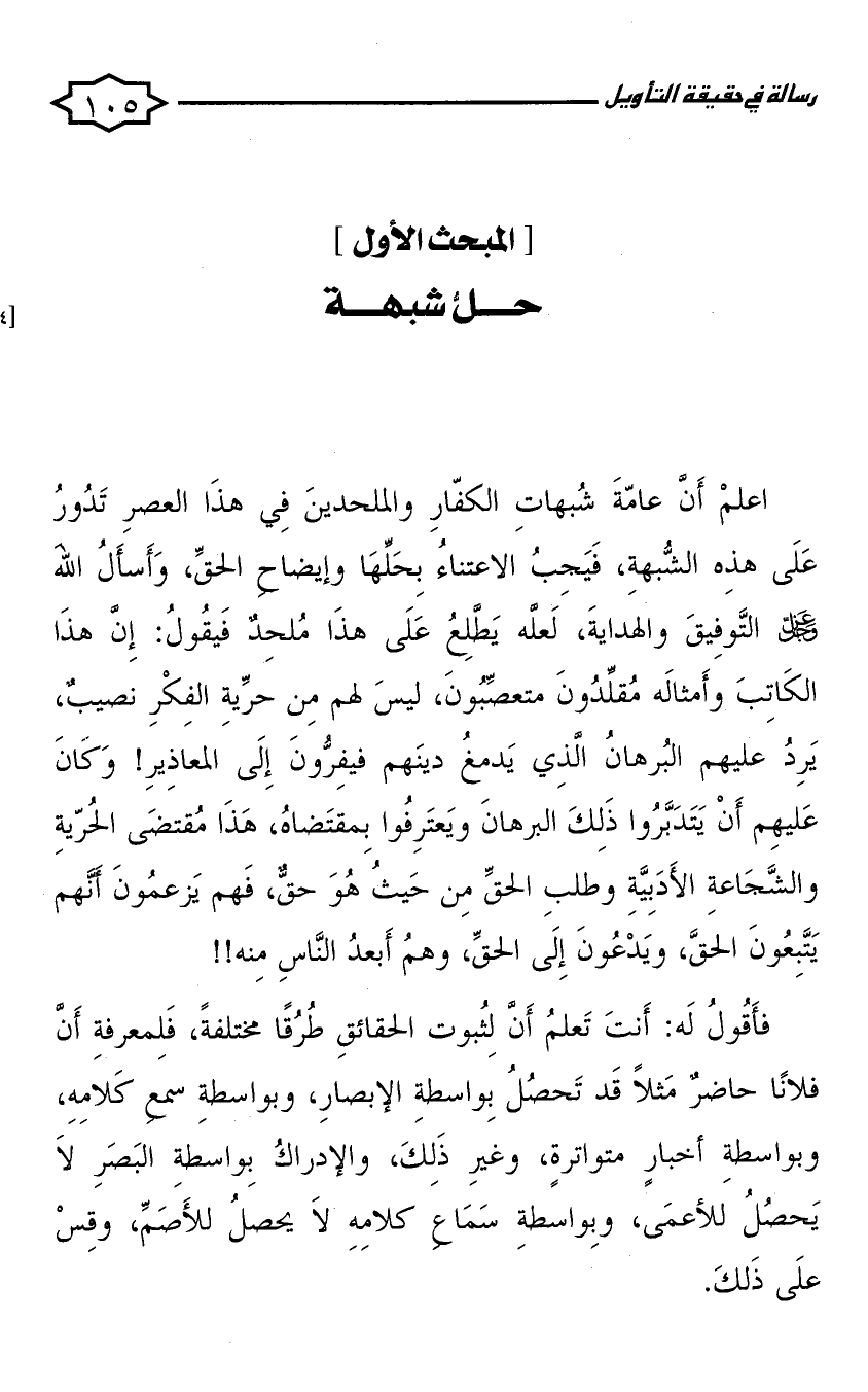 المبحث الأول: حل شبهة