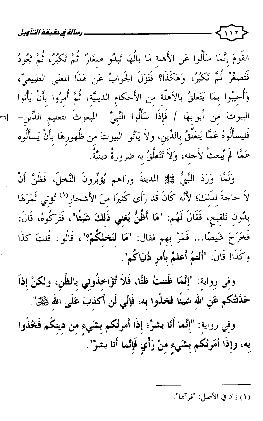 وفي رواية: «إنما أنا بشر؛ إذا أمرتكم بشيء ن دينكم فخذوا به، وإذا أمرتكم بشيء من رأي فإنما أنا بشر».