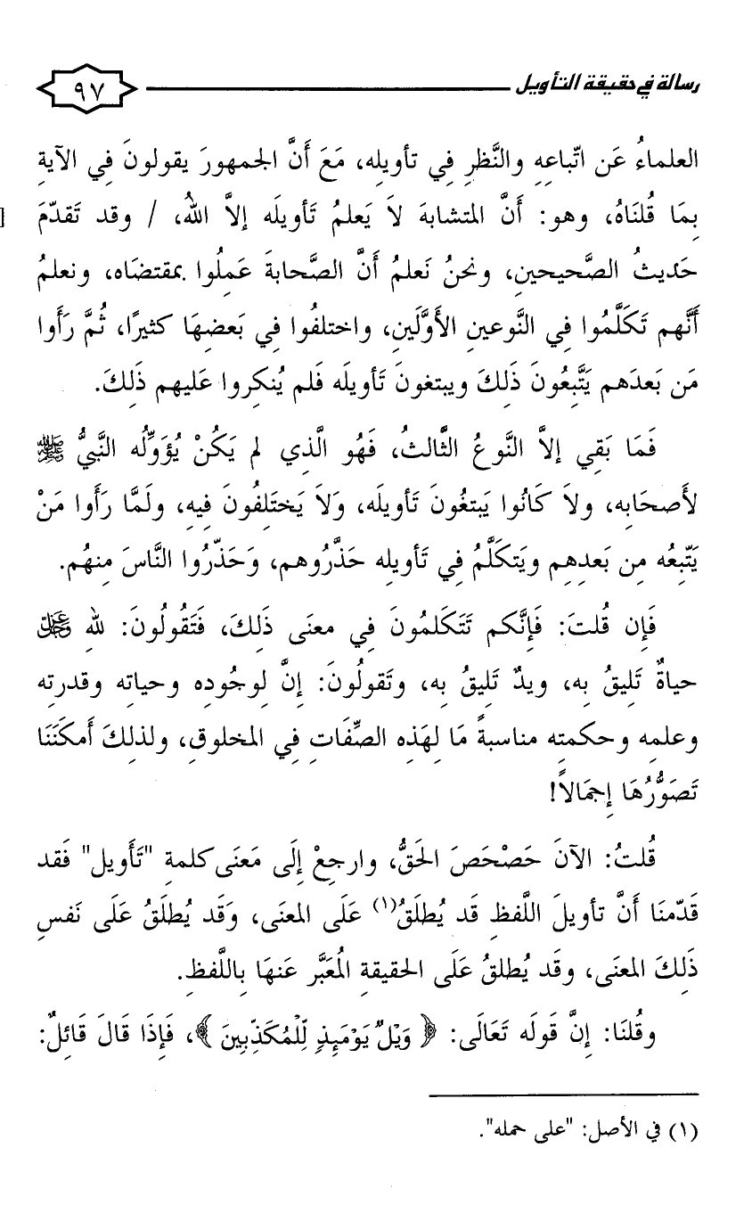 قلت: الآن حصحص الحق، وارجع إلى معنى كلمة "تأويل" فقد قدمنا أن تأويل اللفظ قد يطلق على المعنى، وقد يطلق على نفس ذلك المعنى، وقد يطلق على الحقيقة المعبر عنها باللفظ.