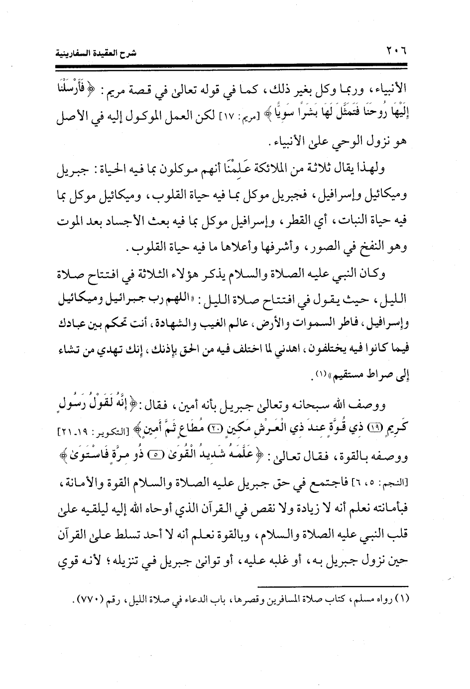وكان النبي عليه الصلاة والسلام يذكر هؤلاء الثلاثة في افتتاح صلاة الليل، حيث يقول في افتتاح صلاة الليل: ((اللهم رب جبرائيل وميكائيل وإسرافيل، فاطر السموات والأرض، عالم الغيب والشهادة، أنت تحكم بين عبادك فيما كانوا فيه يختلفون، أهدني لما اختلف فيه من الحق بإذنك، إنك تهدي من تشاء إلى صراط مستقيم) (¬1) .
