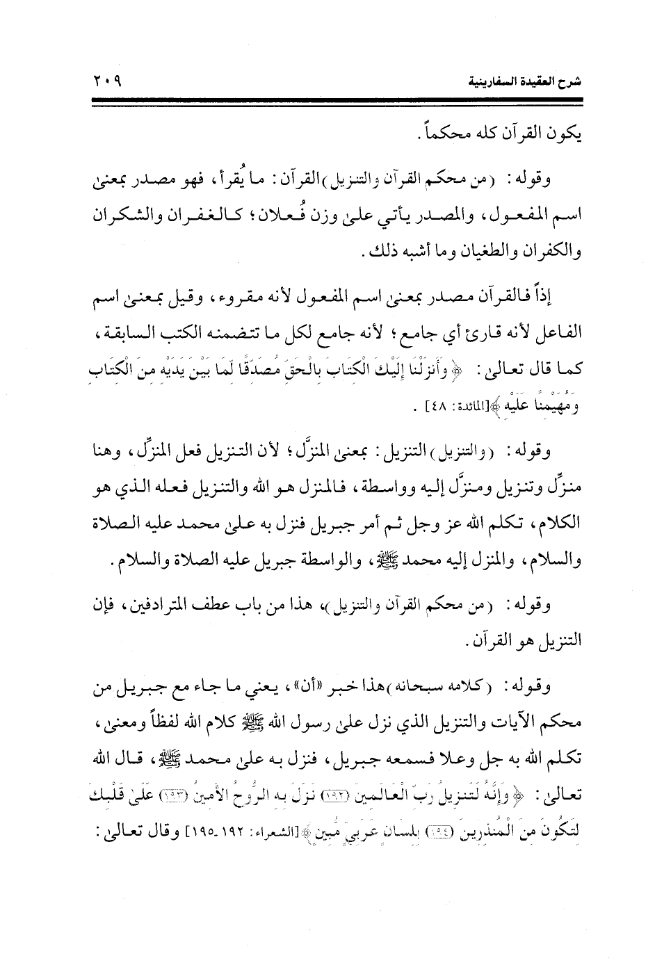 وقوله: (من محكم القرآن والتنزيل) القرآن: ما يقرأ، فهو مصدر بمعنى اسم المفعول، والمصدر يأتي على وزن فعلان؛ كالغفران والشكران والكفران والطغيان وما أشبه ذلك.