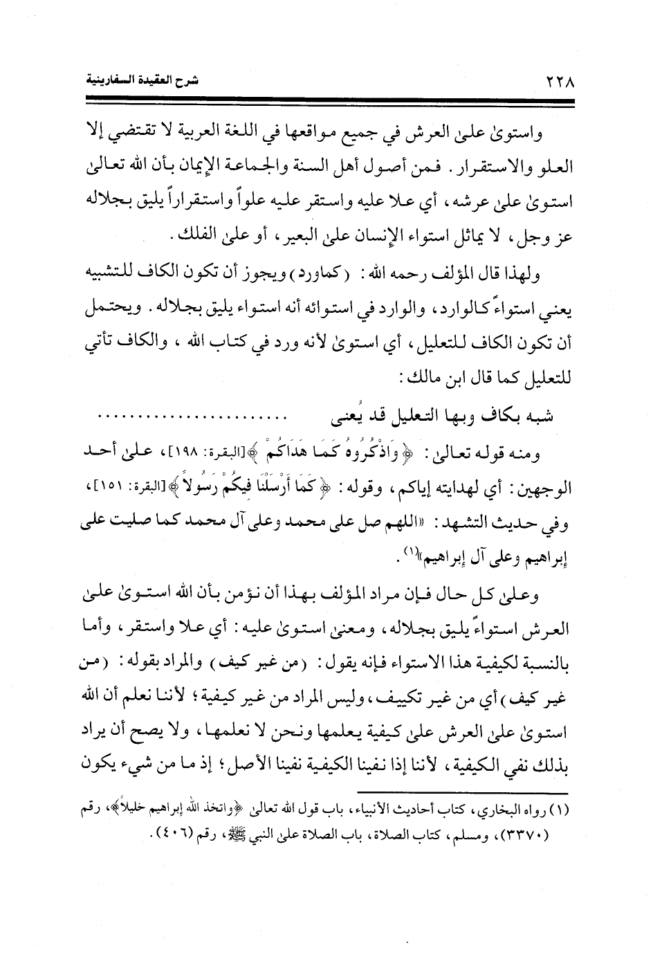 ولهذا قال المؤلف رحمه الله: (كما ورد) ويجوز أن تكون الكاف للتشبيه يعني استواء كالوارد، والوارد في استوائه أنه استواء يليق بجلاله. ويحتمل أن تكون الكاف للتعليل، أي استوى لأنه ورد في كتاب الله، والكاف تأتي للتعليل كما قال ابن مالك: