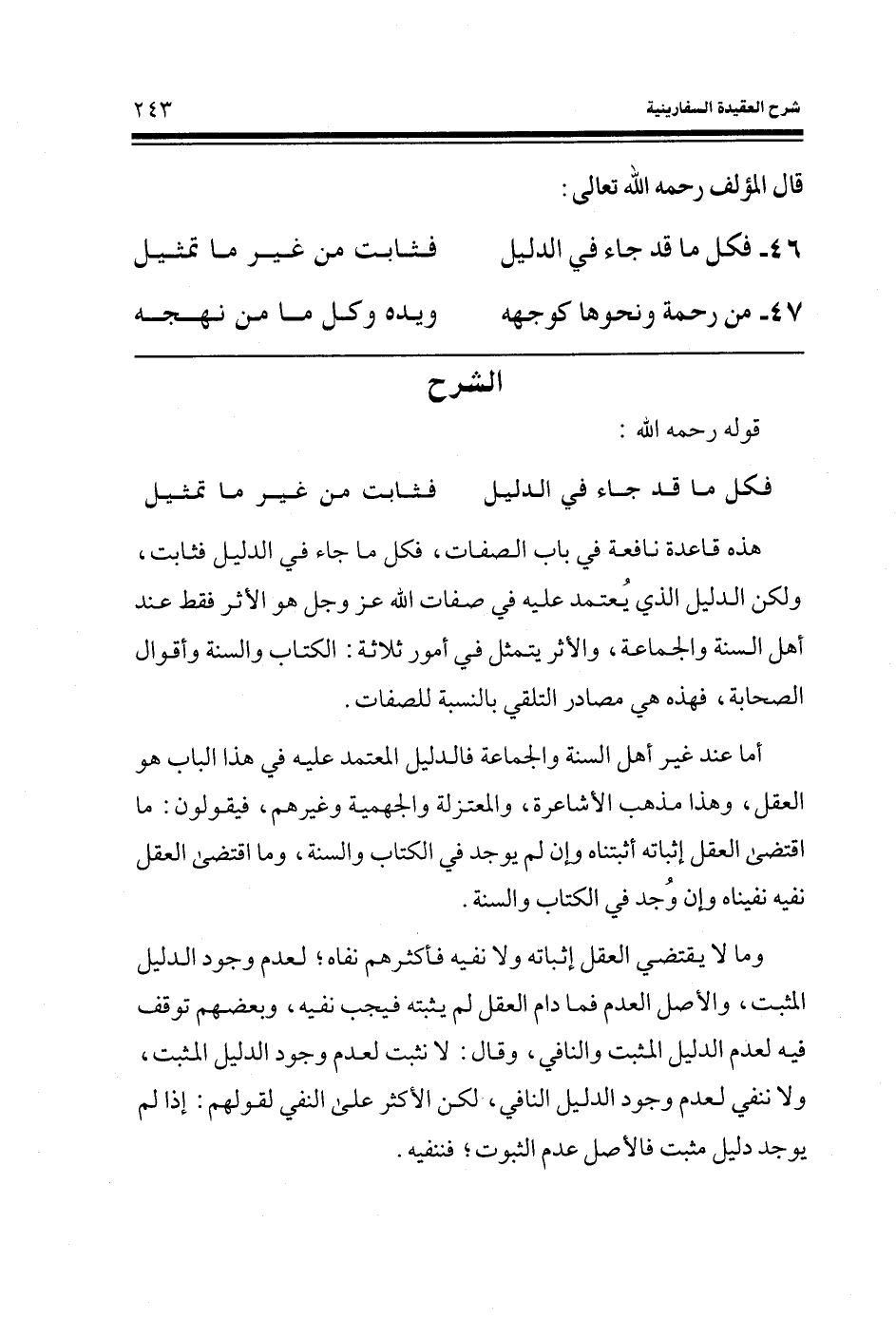 46- فكل ما قد جاء في الدليل ... فثابت من غير ما تمثيل