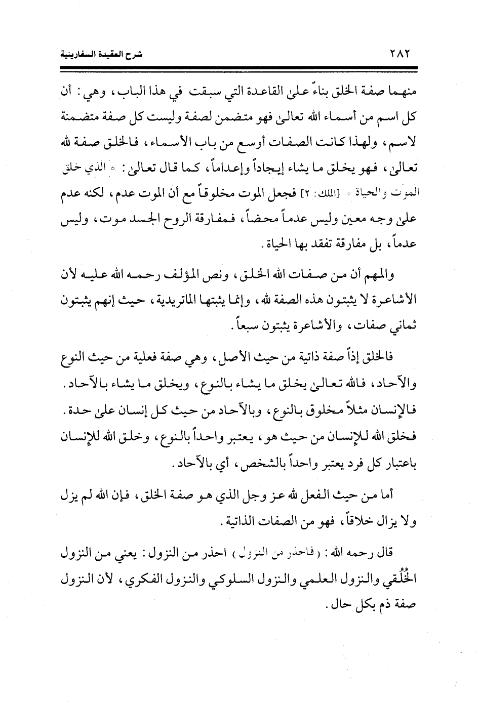 والمهم أن من صفات الله الخلق، ونص المؤلف رحمه الله عليه لأن الأشاعرة لا يثبتون هذه الصفة لله، وإنما يثبتها الماتريدية، حيث أنهم يثبتون ثماني صفات، والأشاعرة يثبتون سبعاً.