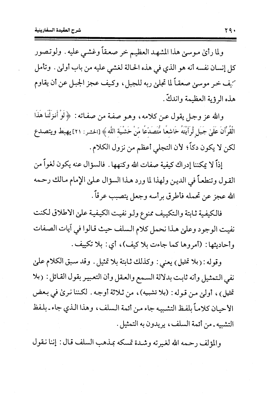 إذاً لا يمكننا إدراك كيفية صفات الله وكنهها. فالسؤال عنه يكون لغواً من القول وتنطعاً في الدين ولهذا لما ورد هذا السؤال على الإمام مالك رحمه الله عجز عن تحمله فأطرق برأسه وجعل يتصبب عرقاً.