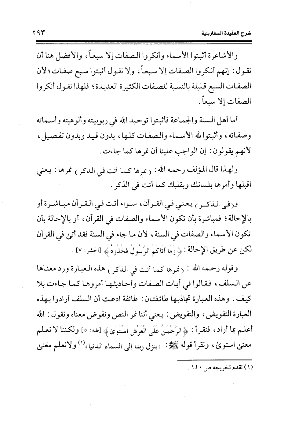 ولهذا قال المؤلف رحمه الله: (نمرها كما أتت في الذكر) نمرها: يعني اقبلها وأمرها بلسانك وبقلبك كما أتت في الذكر.
