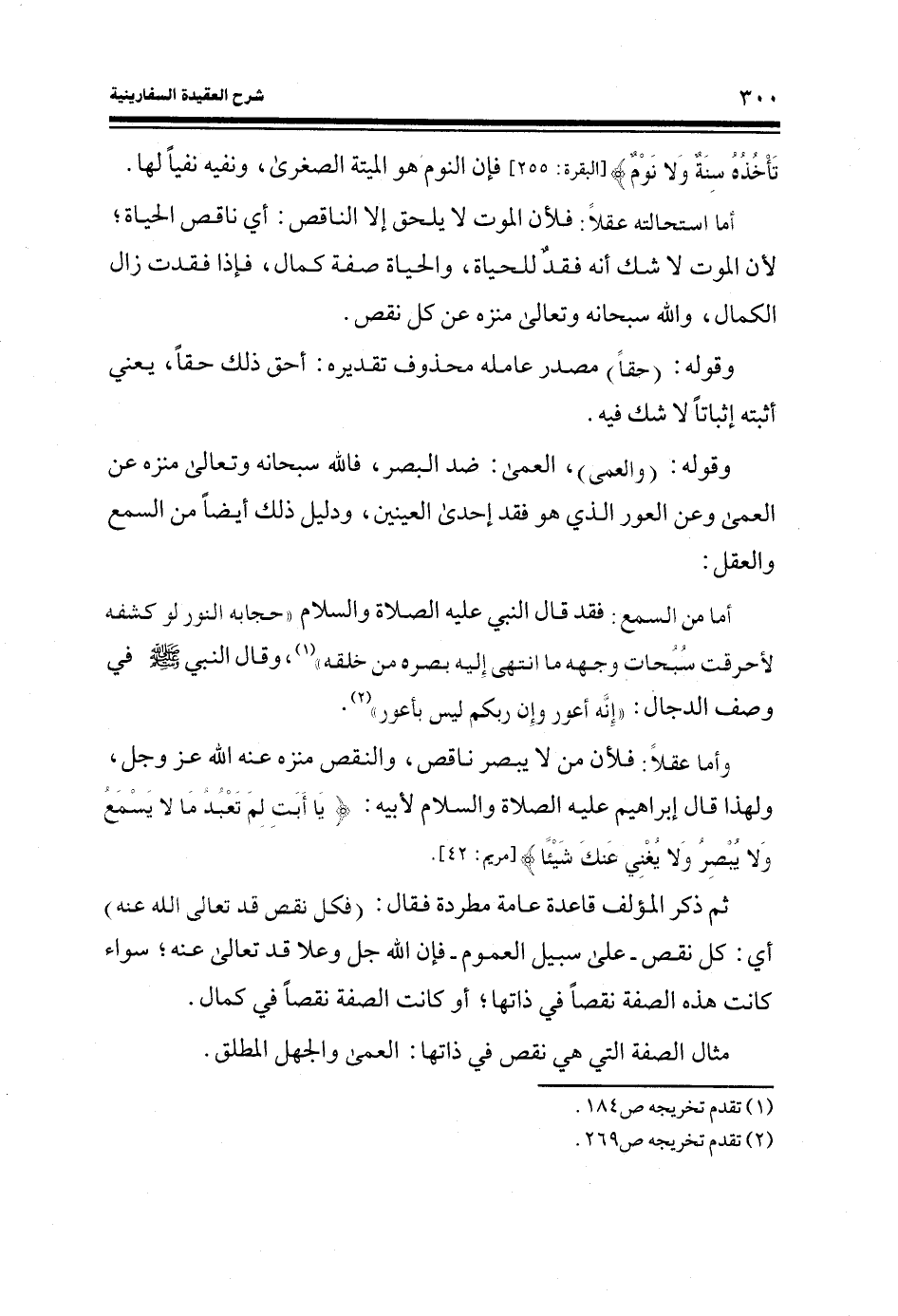 أما من السمع: فقد قال النبي عليه الصلاة والسلام ((حجابه النور لو كشفه لأحرقت سُبحات وجهه ما انتهى إليه بصره من خلقه) (¬1) ، وقال النبي صلى الله عليه وسلم في وصف الدجال: (إنه أعور وإن ربكم ليس بأعور) (¬2) .