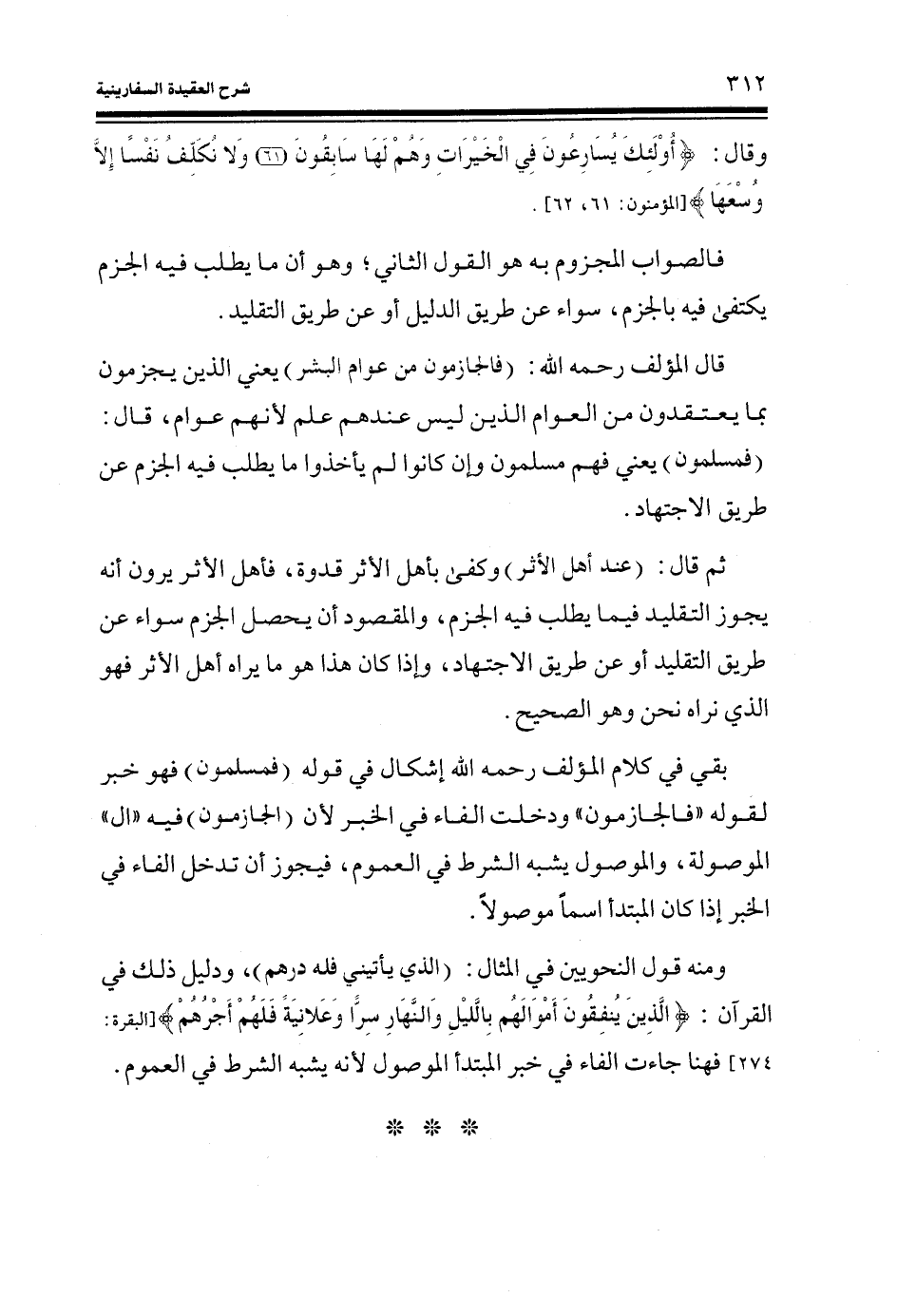 بقي في كلام المؤلف رحمه الله إشكال في قوله (فمسلمون) فهو خبر لقوله (فالجازمون) ودخلت الفاء في الخبر لأن (الجازمون) فيه ((ال) الموصولة، والموصول يشبه الشرط في العموم، فيجوز أن تدخل الفاء في الخبر إذا كان المبتدأ اسما موصولا.