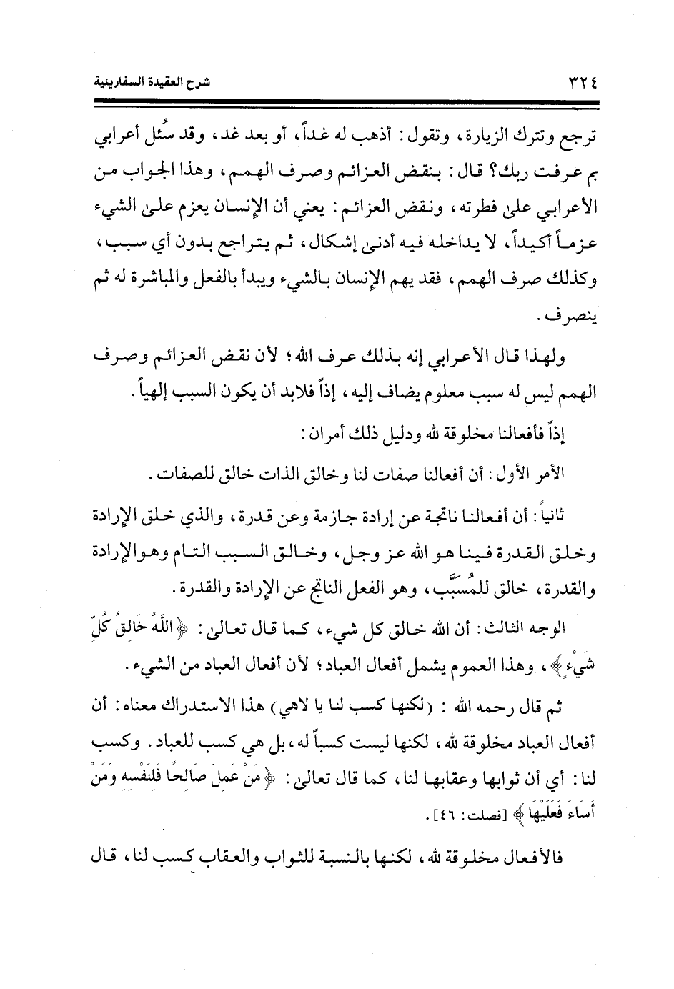 ثانياً: أن أفعالنا ناتجة عن إرادة جازمة وعن قدرة، والذي خلق الإرادة وخلق القدرة فينا هو الله عز وجل، وخالق السبب التام وهو الإرادة والقدرة، خالق للمسبب، وهو الفعل الناتج عن الإرادة والقدرة.