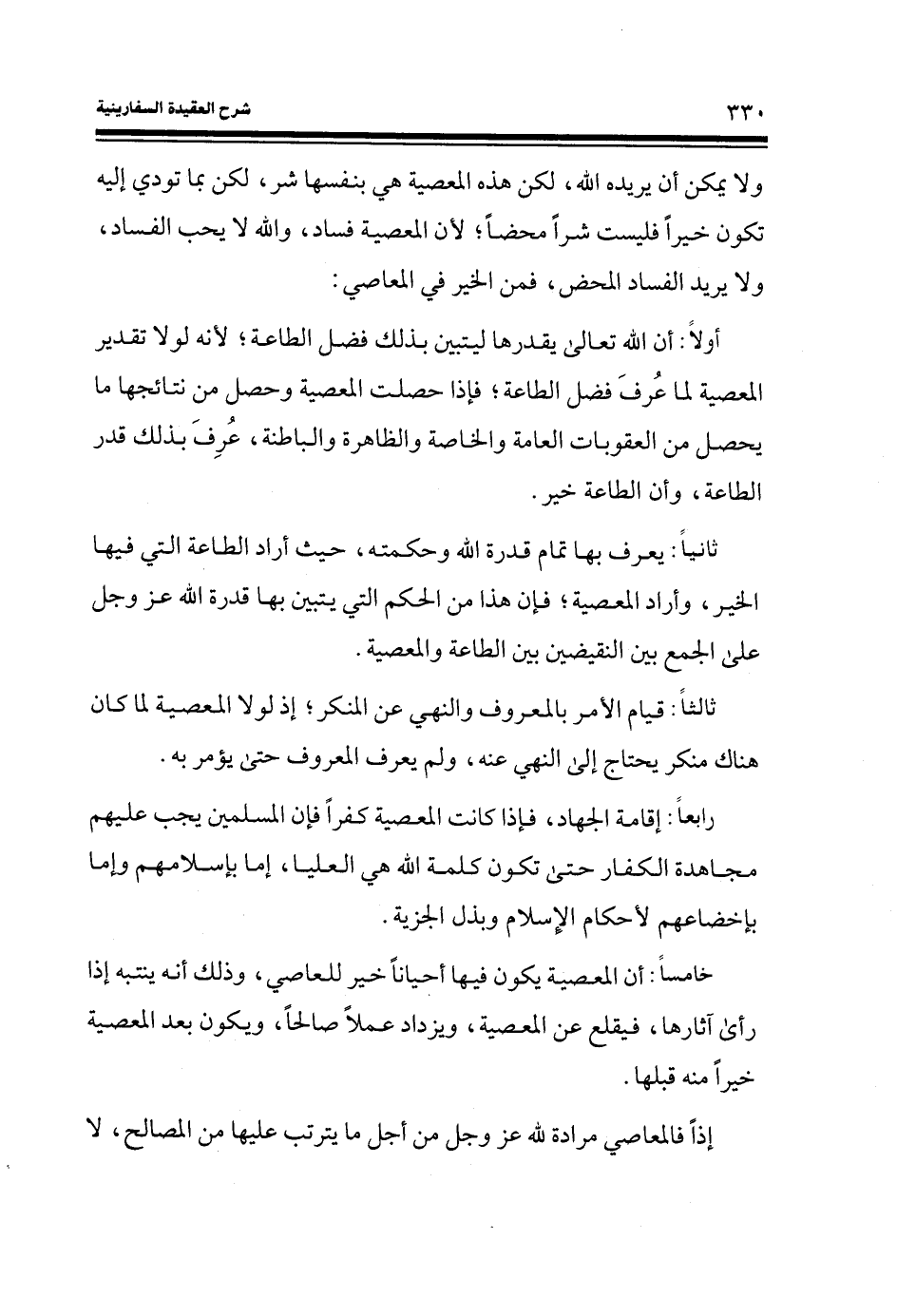 خامساً: أن المعصية يكون فيها أحياناً خير للعاصي، وذلك أنه ينتبه إذا رأى آثارها، فيقلع عن المعصية، ويزداد عملاً صالحاً، ويكون عبد المعصية خيراً منه قبلها.