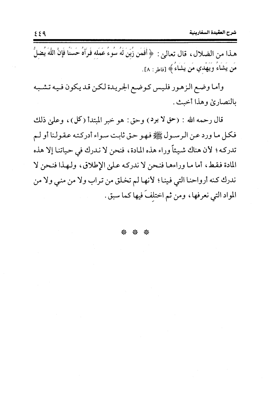هذا من الضلال، قال تعالى: (أَفَمَنْ زُيِّنَ لَهُ سُوءُ عَمَلِهِ فَرَآهُ حَسَناً فَإِنَّ اللَّهَ يُضِلُّ مَنْ يَشَاءُ وَيَهدِي مَنْ يَشَاء) (فاطر: الآية8)) .