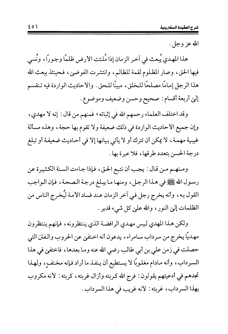 هذا المهدي يبعث في آخر الزمان إذا مُلئت الأرض ظلماً وجوراً، ونسي فيها الحق، وصار المظلوم لقمة للظالم، وانتشرت الفوضى، فحينئذٍ يبعث الله هذا الرجل إماماً مصلحاً للحق. والأحاديث الواردة فيه تنقسم إلى أربعة أقسام: صحيح وحسن وضعيف وموضوع.