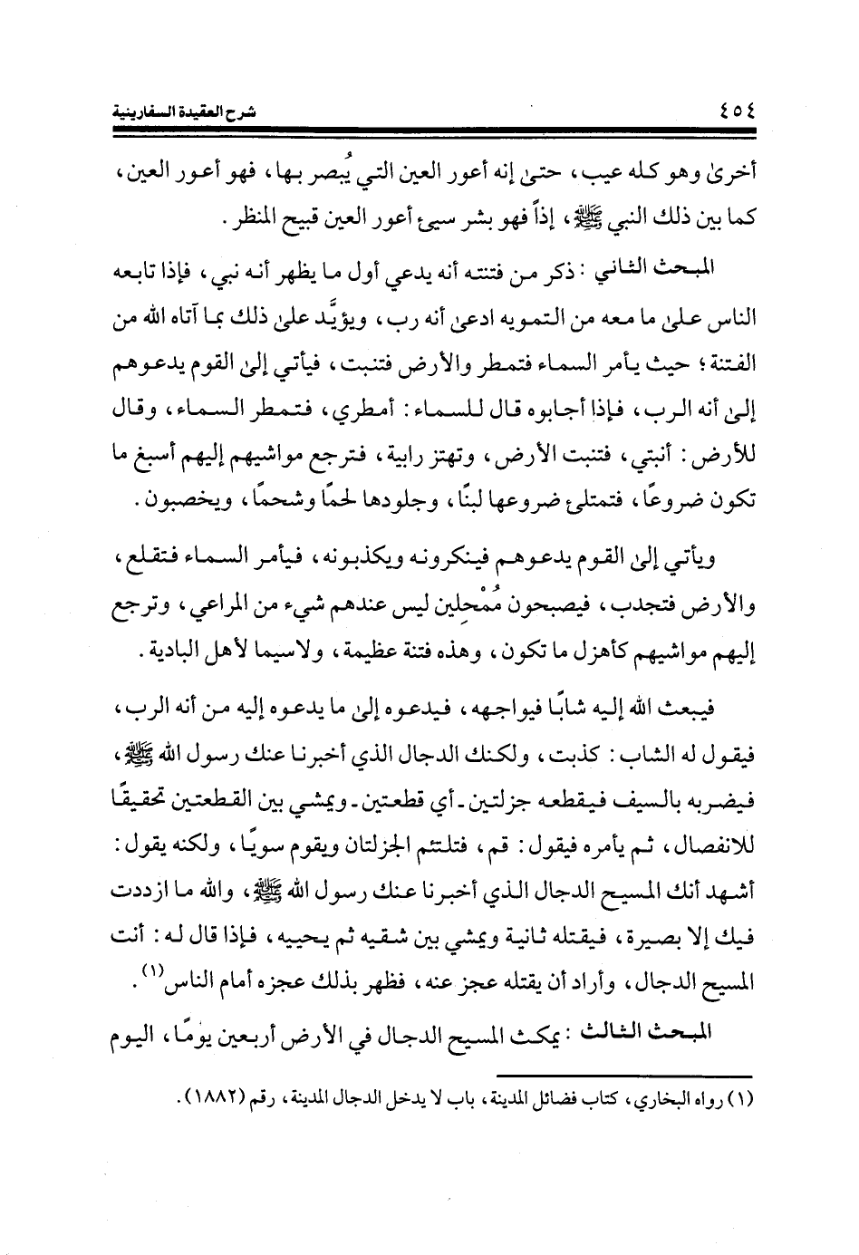 (¬1) رواه البخاري، كتاب فضائل المدينة، باب لا يدخل الدجال المدينة، رقم (1882) .