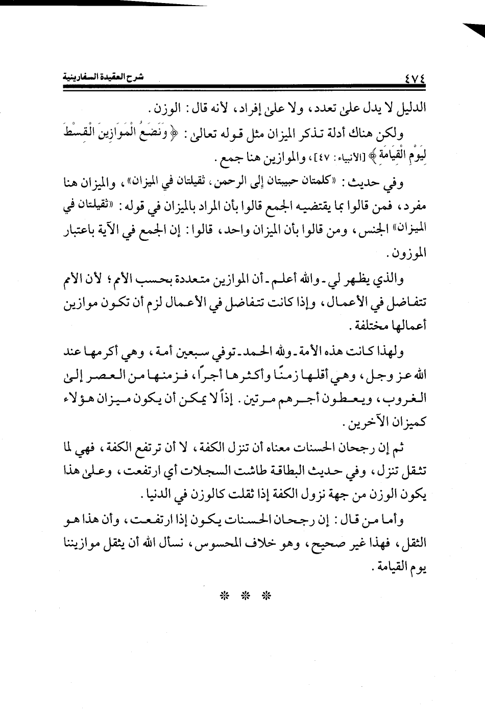 والذي يظهر لي - والله أعلم - إن الموازين متعددة بحسب الأمم؛ لأن الأمم تتفاضل في الأعمال، وإذا كانت تتفاضل في الأعمال لزم أن تكون موازين أعمالها مختلفة.