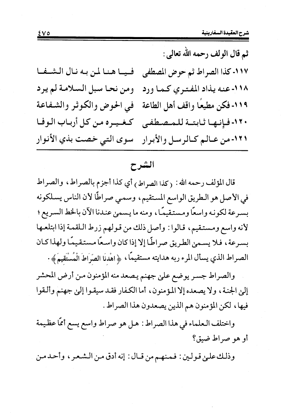 117- كذا الصراط ثم حوض المصطفى ... فيا هنا لمن به نال الشفا