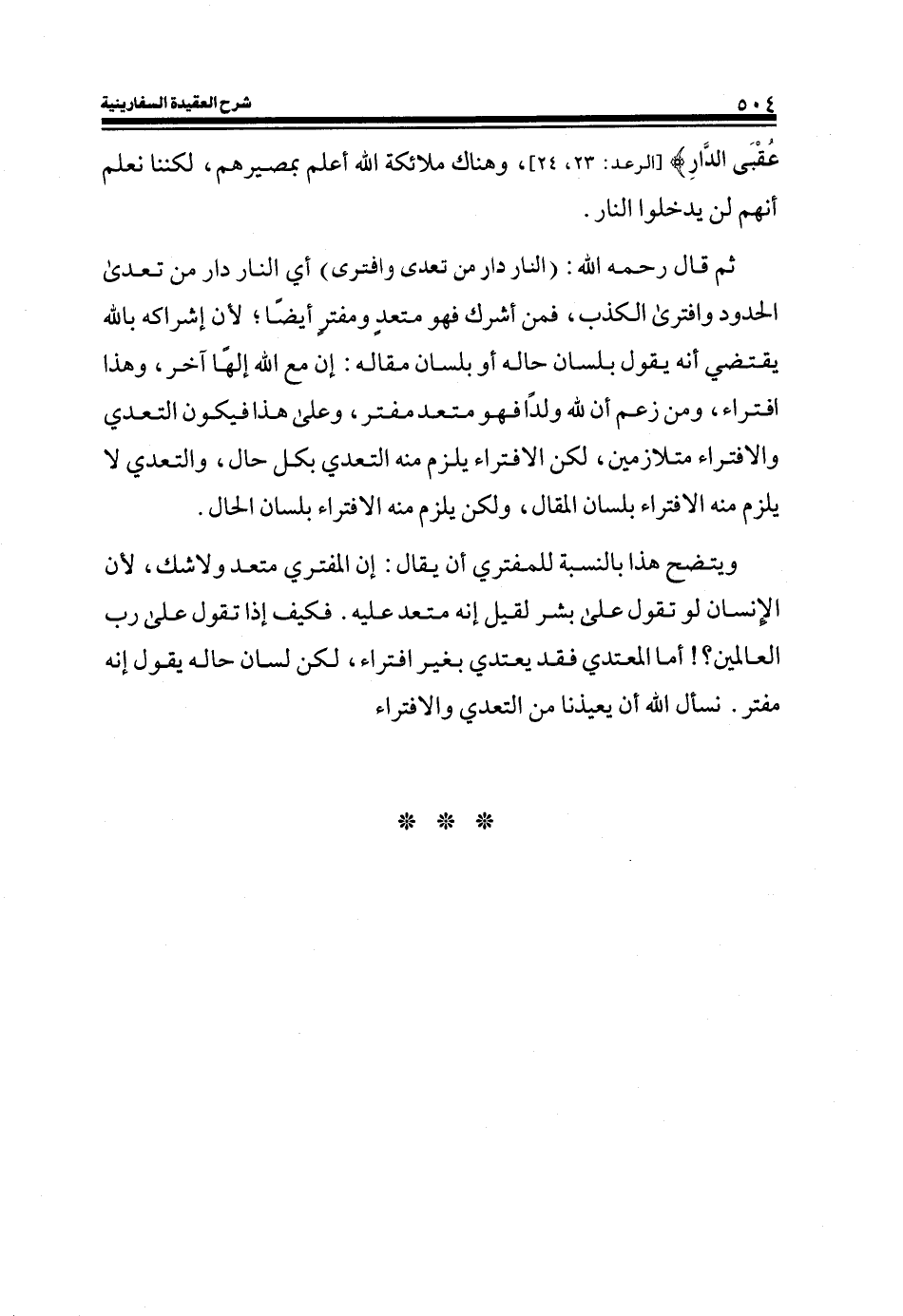 ثم قال رحمه الله: (النار دار من تعدى وافترى) أي النار دار من تعدى الحدود وافترى الكذب، فمن أشرك فهو متعدٍ ومفترٍ أيضاً؛ لأن إشراكه بالله يقتضي انه يقول بلسان حاله أو بلسان مقاله: إن مع الله إلها آخر، وهذا افتراء، ومن زعم أن لله ولداً فهو متعد مفتر، وعلى هذا فيكون التعدي والافتراء متلازمين، لكن الافتراء يلزم منه التعدي بكل حال، والتعدي لا يلزم منه الافتراء بلسان المقال، ولكن يلزم منه الافتراء بلسان الحال.