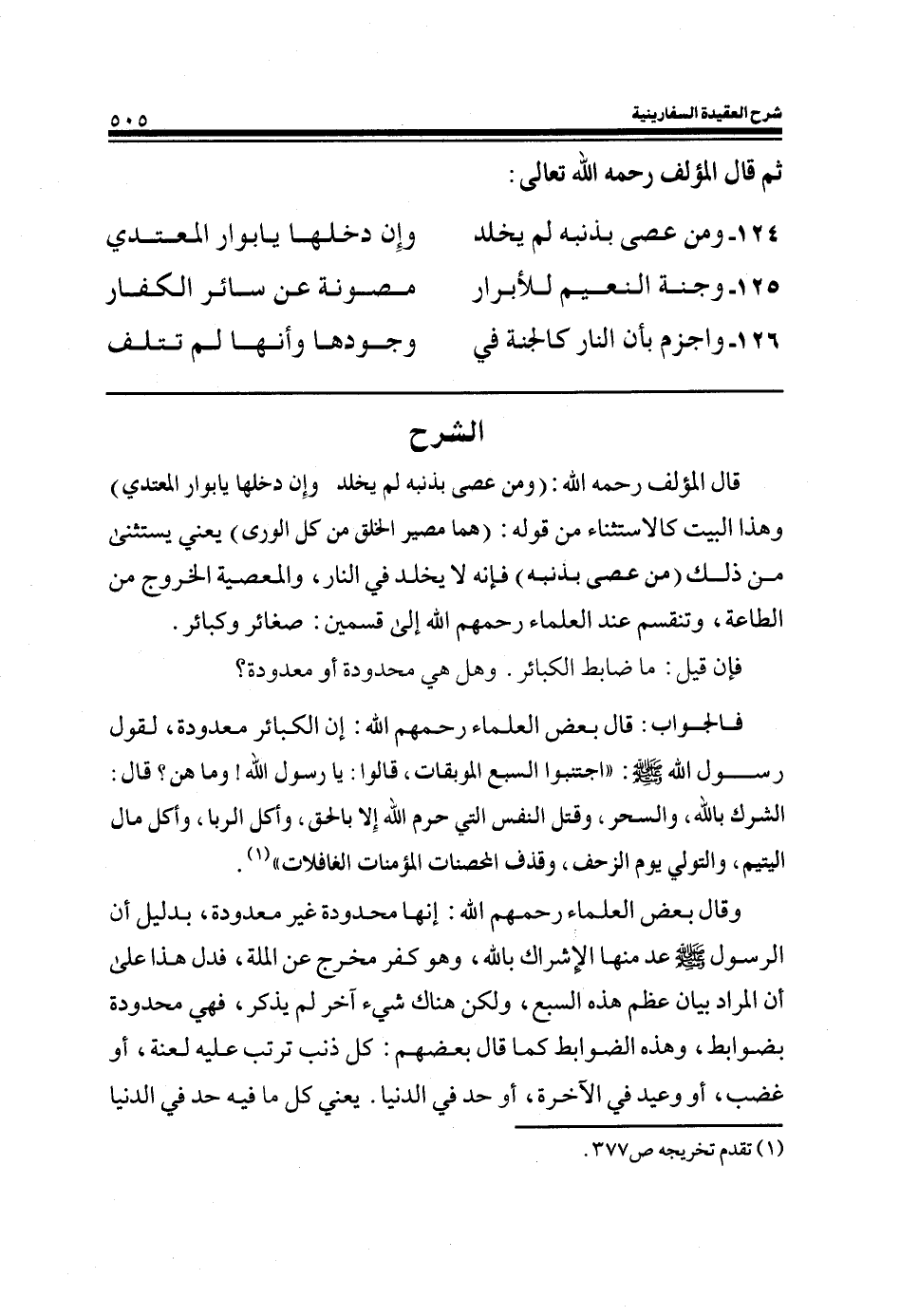 126- واجزم بأن النار كالجنة في ... وجودها وأنها لم تتلف