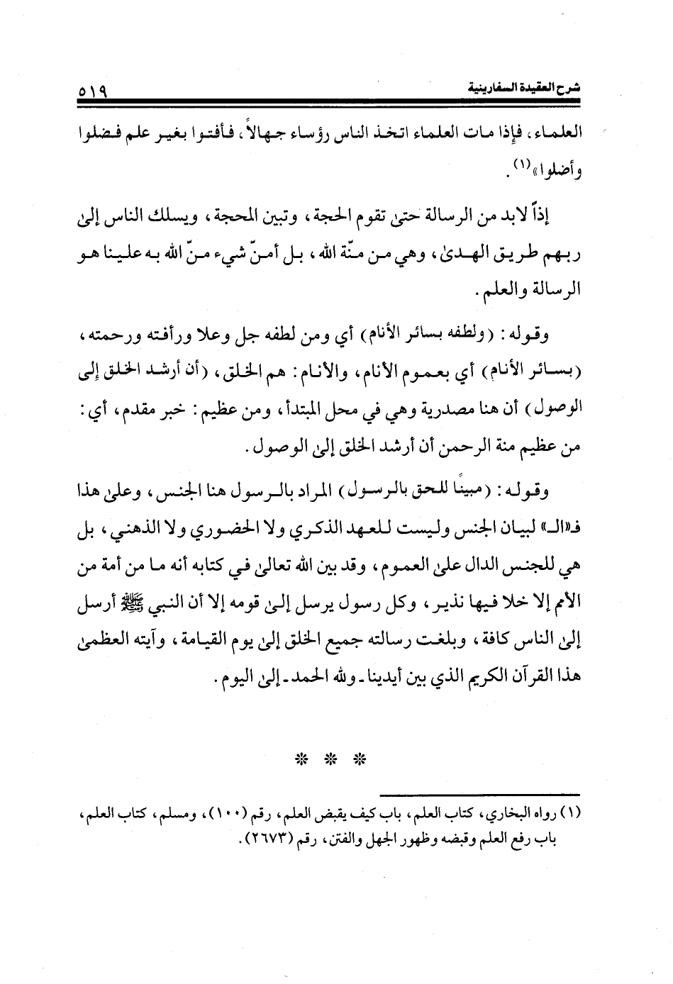(¬1) رواه البخاري، كتاب العلم، باب كيف يقبض العلم، رقم (100) ، ومسلم، كتاب العلم، باب رفع العلم وقبضه وظهور الجهل والفتن، رقم (2673) .