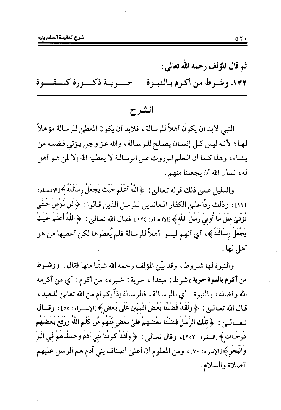 132- وشرط من أُكرم بالنبوة ... حرية ذكورة كقوة