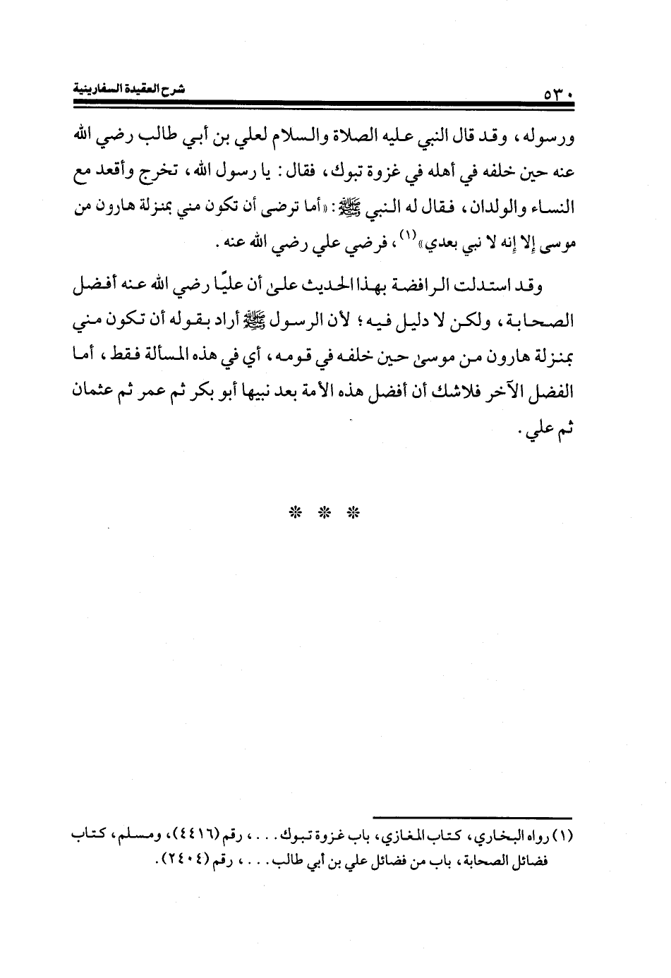 (¬1) رواه البخاري، كتاب المغازي، باب غزوة تبوك....، رقم (4416) ، ومسلم كتاب فضائل الصحابة، باب من فضائل علي بن أبي طالب ... ، رقم (2404) .