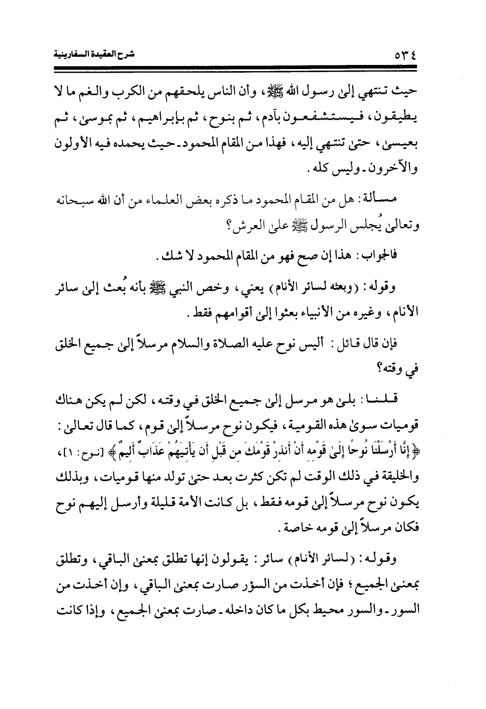 حيث تنتهي إلى رسول الله صلى الله عليه وسلم، وأن الناس يلحقهم من الكرب والغنم ما لا يطيقون، فيستشفعون بآدم، ثم بنوح، ثم بإبراهيم، ثم بموسى، ثم بعيسى، حتى تنتهي إليه، فهذا من المقام المحمود - حيث يحمده فيه الأولون والآخرون - وليس كله.