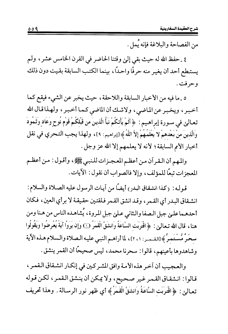 والمهم أن القرآن من أعظم المعجزات للنبي صلى الله عليه وسلم، وأقول: من أعظم المعجزات تبعاً للمؤلف، وإلا فالصواب أن نقول: الآيات.