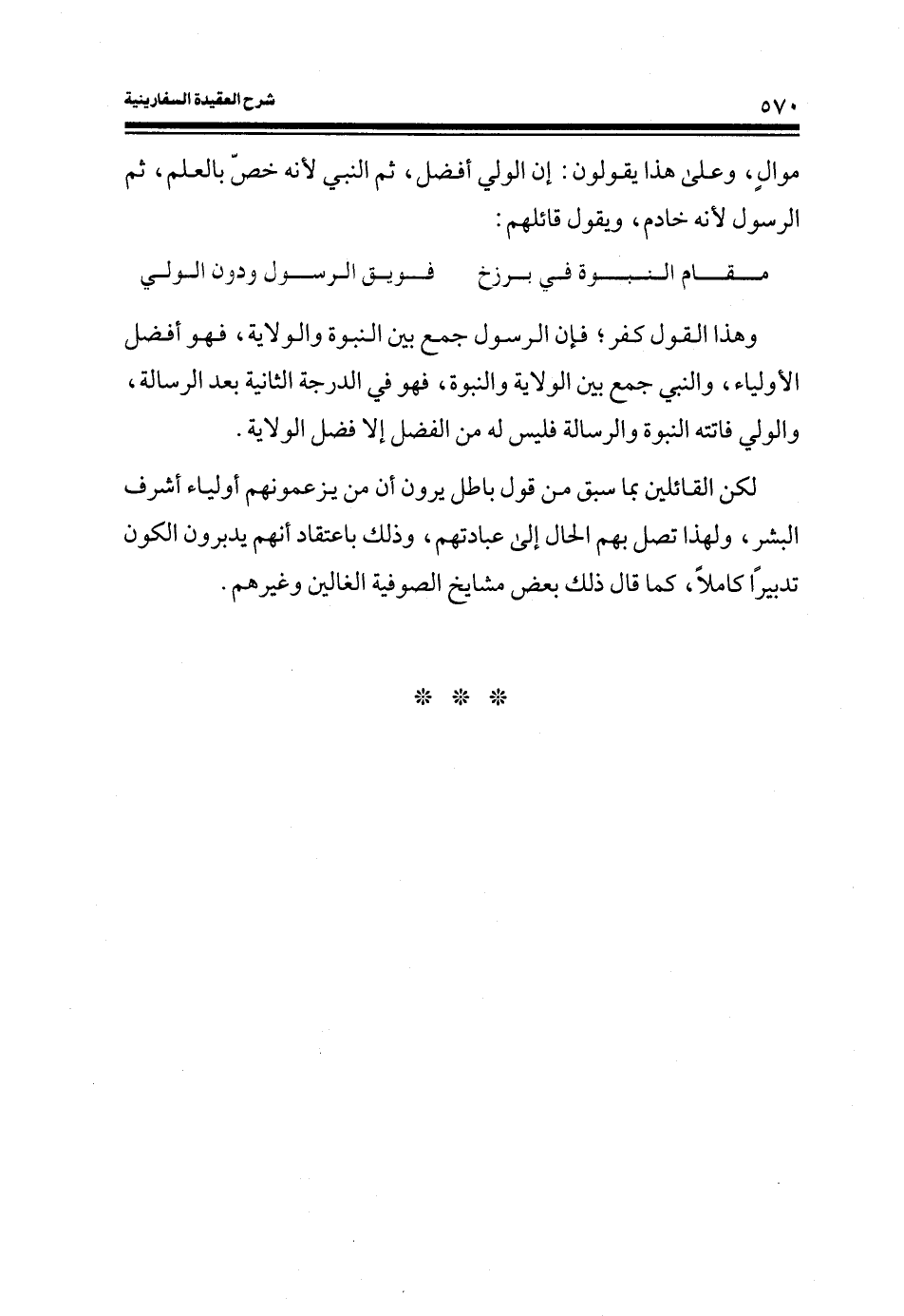 وهذا القول كفر؛ فإن الرسول جمع بين النبوة والولاية، فهو أفضل الأولياء، والنبي جمع بين الولاية والنبوة، فهو في الدرجة الثانية بعد الرسالة، والولي فاتته النبوة والرسالة فليس له من الفضل إلا فضل الولاية.