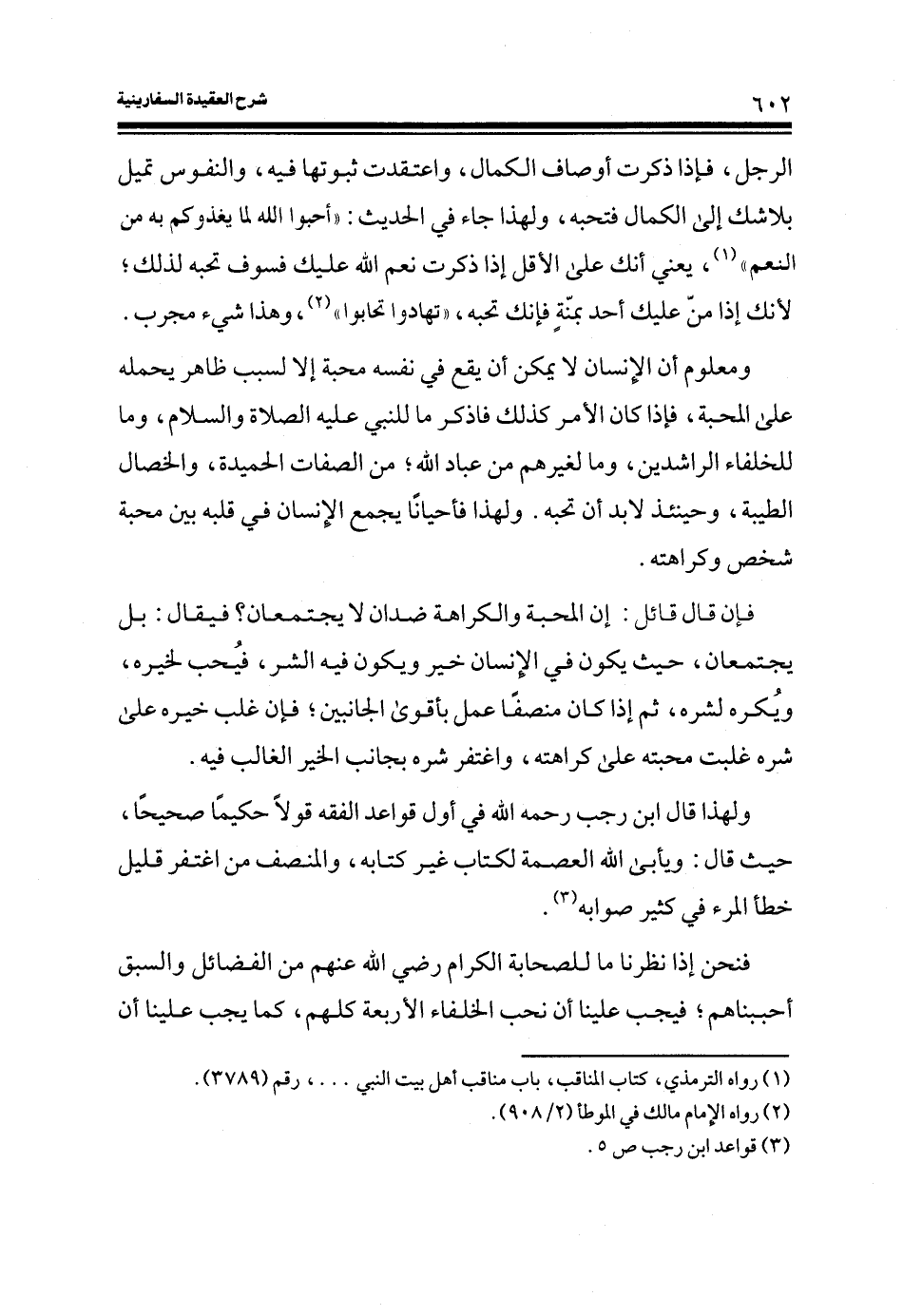 ومعلوم أن الإنسان لا يمكن أن يقع في نفسه محبة إلا لسبب ظاهر يحمله على المحبة، فإذا كان الأمر كذلك فاذكر ما للنبي عليه الصلاة والسلام، وما للخلفاء الراشدين، وما لغيرهم من عباد الله؛ من الصفات الحميدة، والخصال الطيبة، وحينئذٍ لابد أن تحبه. ولهذا فأحياناً يجمع الإنسان في قلبه بين محبة شخص وكراهته.